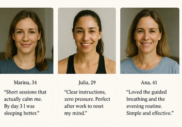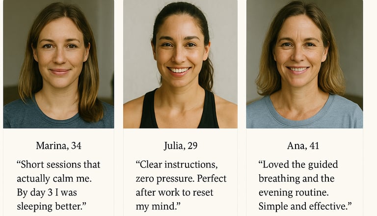 Simple 10–20 minute routines to relax your mind, release stress and find focus—no equipment, no experience needed. Follow our 7‑day path to feel lighter and calmer at home.