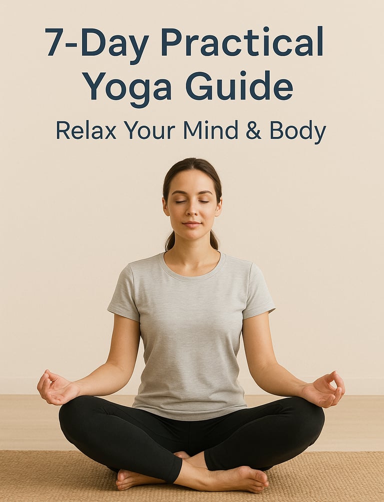 7 days of routines (10–20 min): breathing, gentle poses, and guided relaxation.